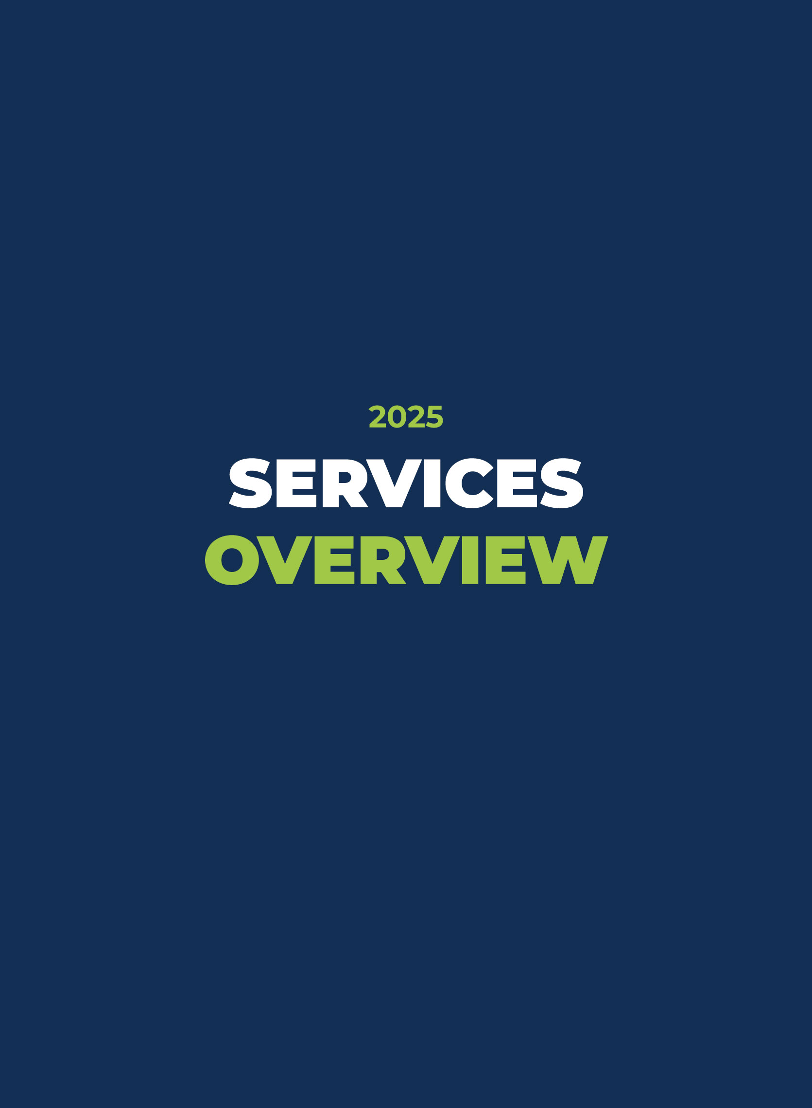 Our 2025 Services Overview provides a comprehensive outline of our offerings, approach, strengths, what you can expect when you work with us and who you will be working with. Key sections cover: